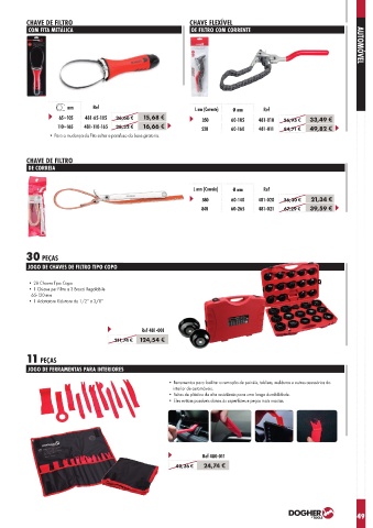 • Ferramentas para facilitar a remoção de painéis, tabliers, molduras e outros acessórios do