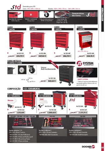 Carro: 678 x 459 x 1.000 mm Gavetas: 568 x 398 x 75 mm · 568 x 398 x 154 mm