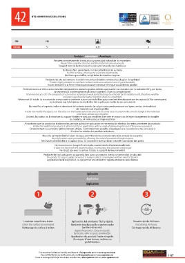 Limpieza superficie a tratar. Aplicación del producto. Fácil y rápida. Secado rápido. 48 horas.