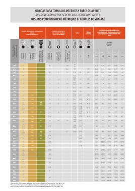 MEDIDAS PARA TORNILLOS MÉTRICOS Y PARES DE APRIETE