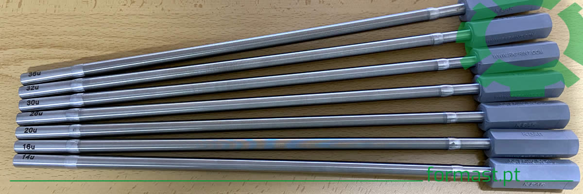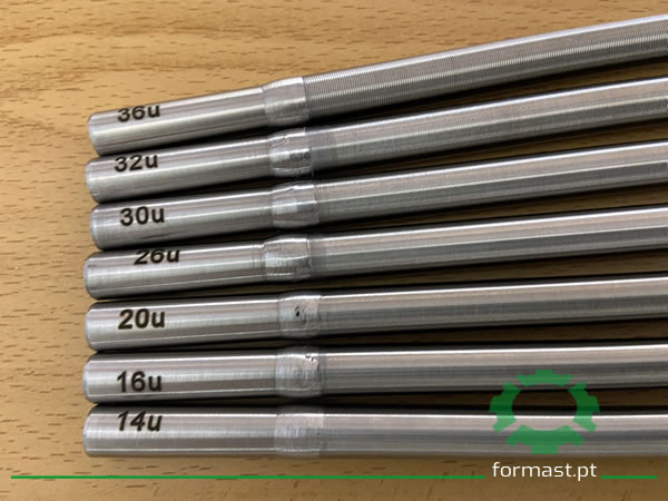 As barras K com fio são produzidas enrolando fio de aço inoxidável trefilado com precisão numa haste de aço inoxidável, que resulta num padrão de ranhuras de formato idêntico.