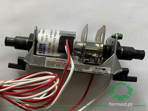 Cada pulso puxa a armadura e o impulsor para frente contra a mola, fazendo com que o impulsor bombei um volume de líquido para fora da porta de saída.