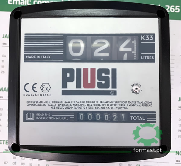 O contador PIUSI K33 ATEX é um caudalímetro mecânico adequado para a monitorização de gasóleo, gasolina e querosene.