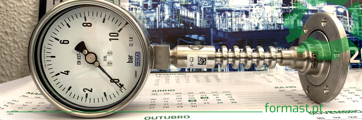 Partilhamos imagem de um manómetro analógico de pressão Wika, para uma aplicação especial, a medição de pressão em circuito com fluidos quimicamente agressivos e com temperatura no processo.